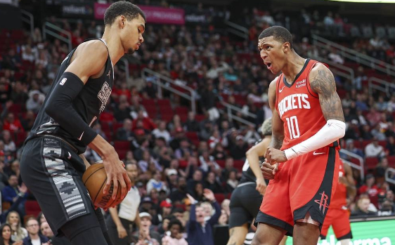 籃球直播吧12月12日訊 NBA常規賽,主場作戰的休斯頓火箭以93-82擊敗圣安東尼奧馬刺,火箭取得3連勝,馬刺遭遇17連敗。伊森18分14籃板1助攻,文班亞馬15分18籃板3助攻。